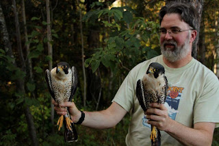 Frank Nicoletti with hatch year Peregrine Falcon, photo by Rachel Harris